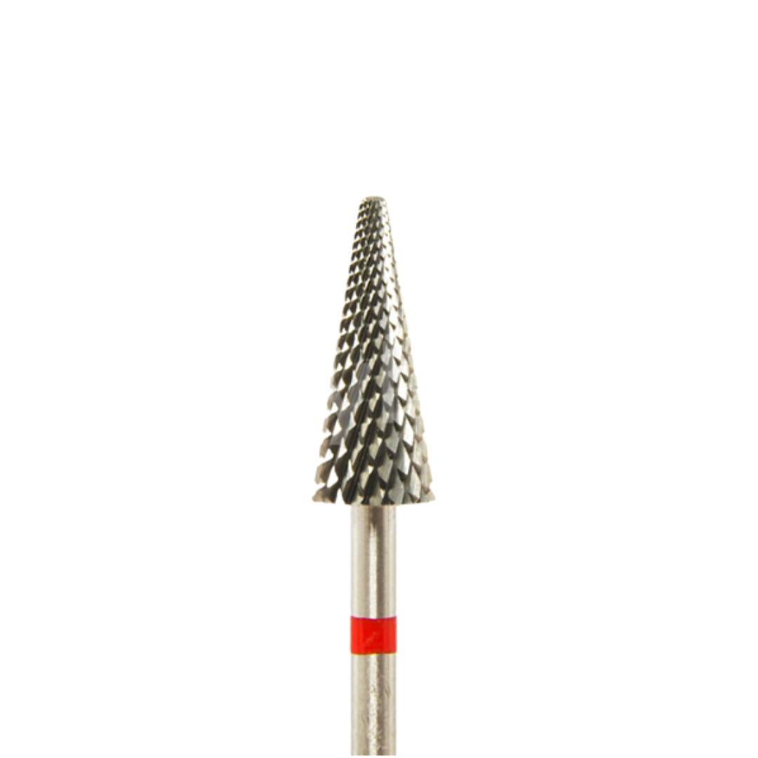Frez F89, zwany potocznie “choinką”, jest niezastąpionym narzędziem w salonach manicure do precyzyjnego ściągania masy żelowej, hybrydowej oraz do detalicznej korekty paznokcia od spodu. Jego charakterystyczne krzyżowe nacięcia i czerwony pasek wskazują na delikatność działania, umożliwiając efektywną pracę z subtelnymi strukturami paznokci.