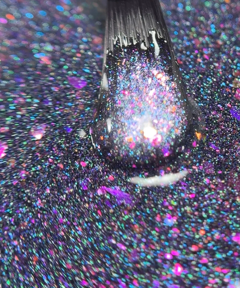 Poznaj niezwykły top bez dyspersji, który w mgnieniu oka nada Twoim stylizacjom niepowtarzalnego uroku. Zatopione w przezroczystej formule holograficzne drobinki sprawią, że paznokcie będą lśnić niczym gwiazdy na nocnym niebie.